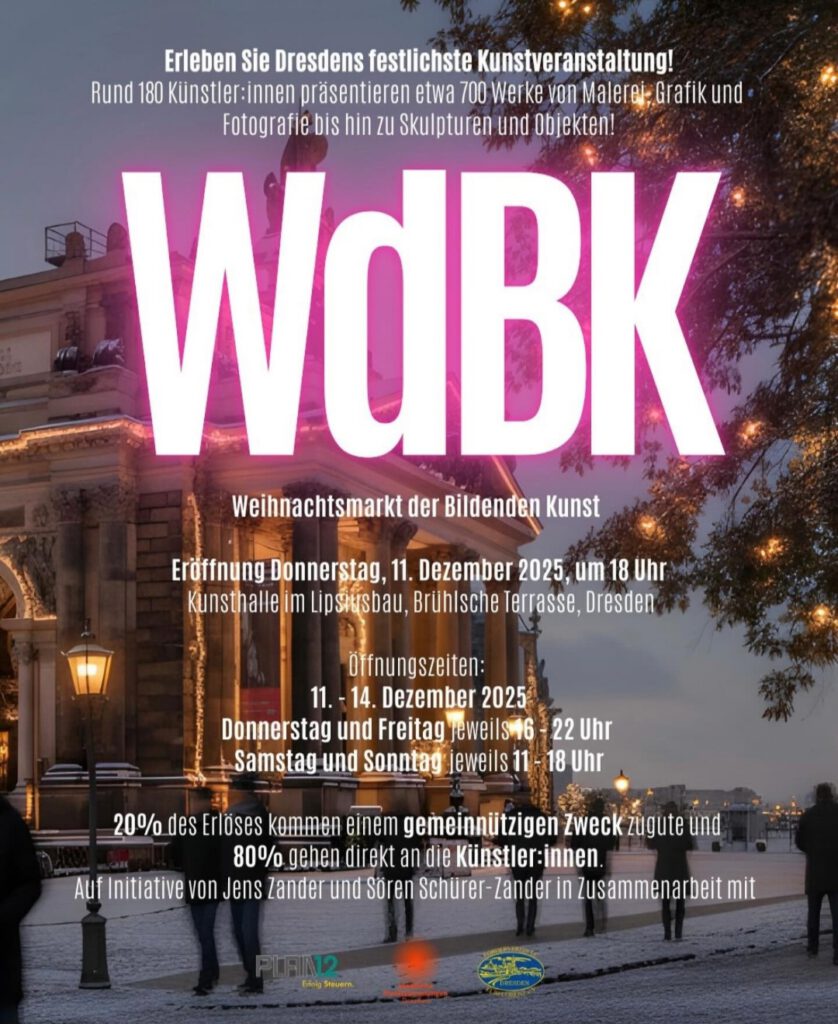 Weitere Informationen gibt es auf den Seiten der Staatlichen Kunstsammlung Dresden: https://www.skd.museum/besucherservice/presse/2025/die-staatlichen-kunstsammlungen-dresden-unterstuetzen-den-neunten-weihnachtsmarkt-der-bildenden-kunst/